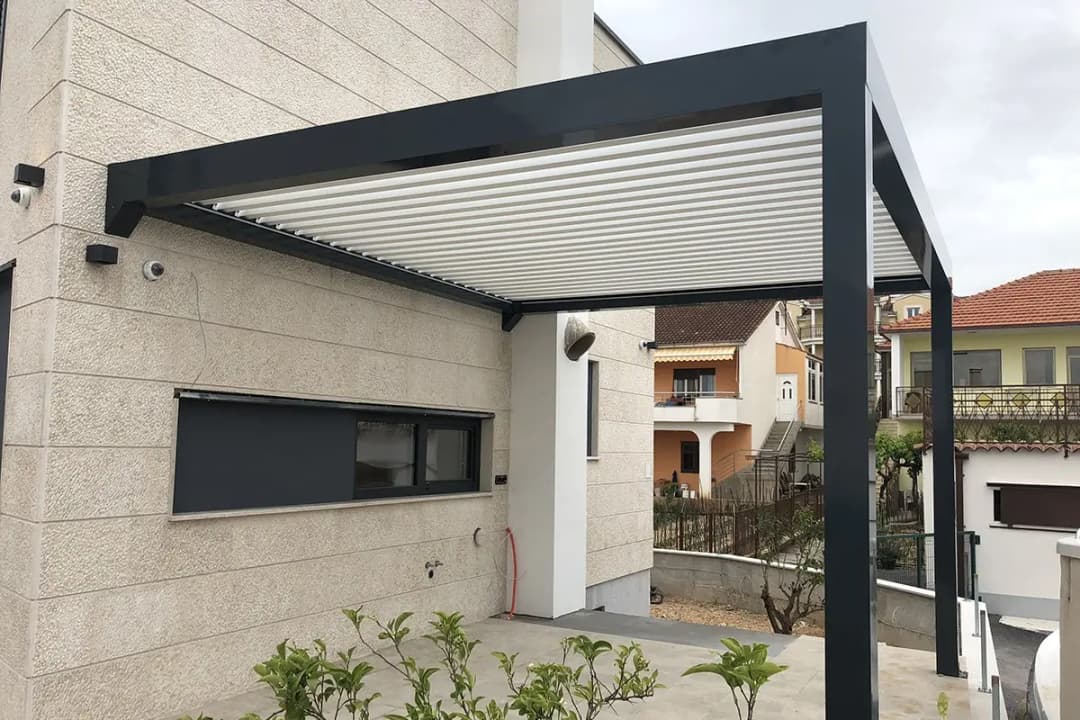 Kan leveres med både lamell- og PVC duk-tak. Alle våre pergolaer kan kombineres med glass eller zip screen-vegger.